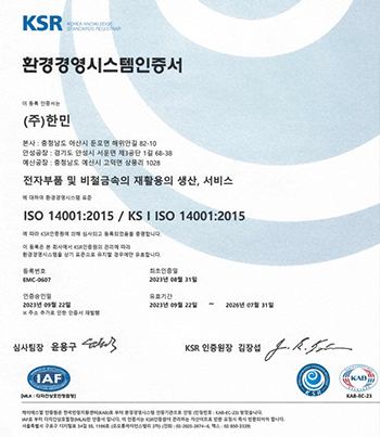 Certified as a specialized materials·parts·equipment company and as a performance-sharing company (Hanmin Co., Ltd. and Hanmin Ecotech Co., Ltd.)
